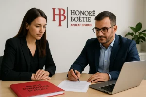 Dossier préparé 100% en ligne, 1 RDV en présence physique des 2 époux et 2 avocats.